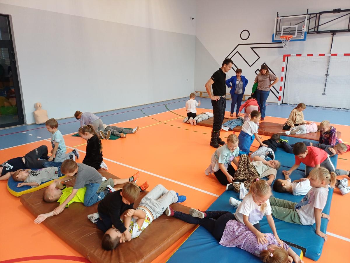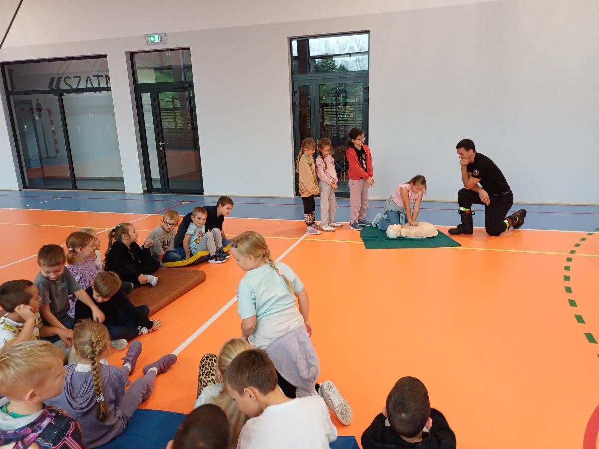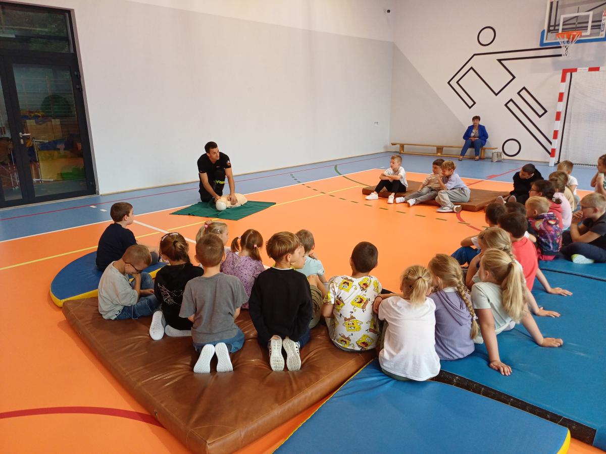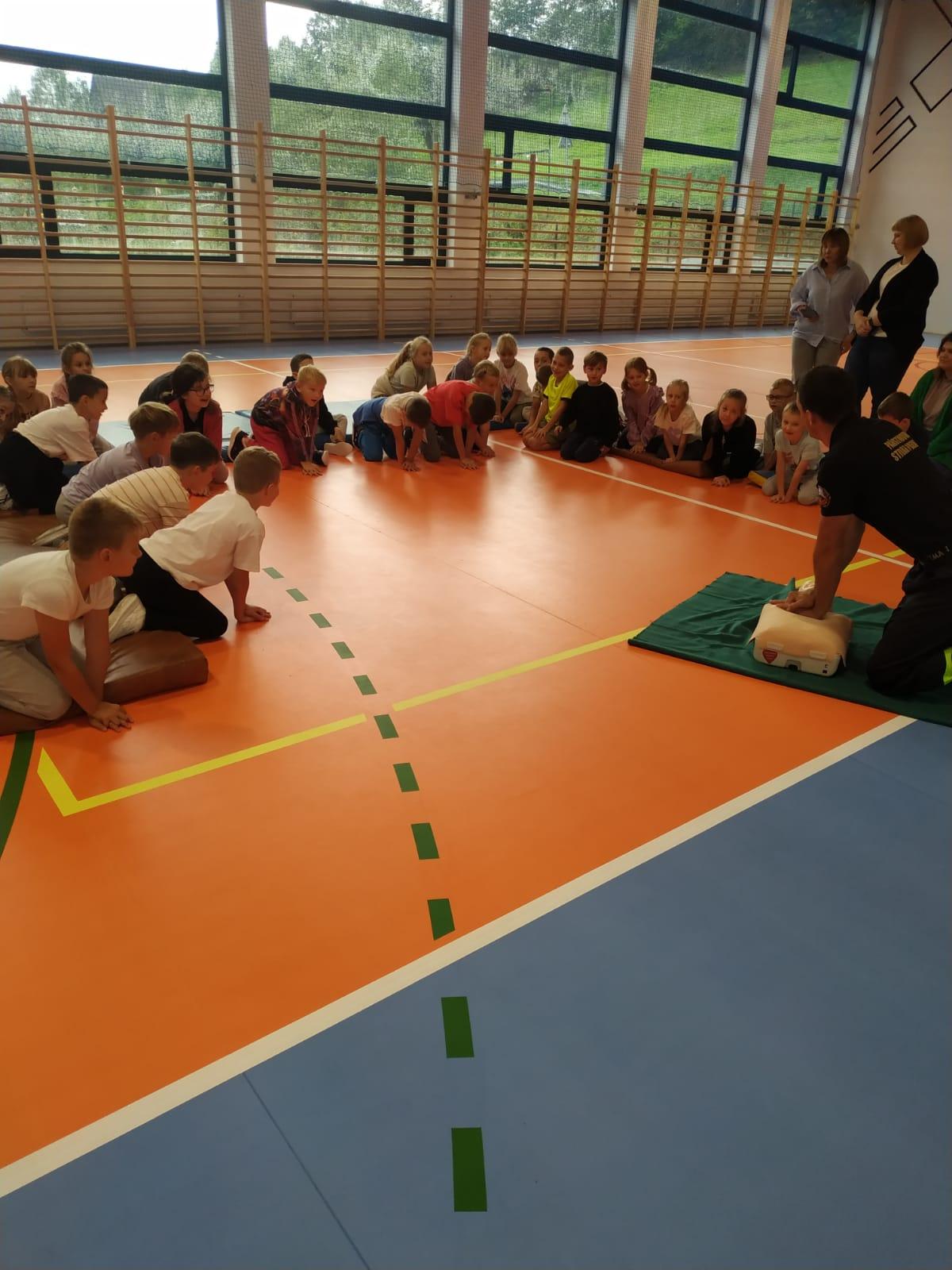 Dnia 16.09.2025r. naszą szkołę odwiedził przedstawiciel OSP w Baczynie. Uczniowie kl.1-3 z zachwytem i wielkim zaciekawieniem uczestniczyli w spotkaniu, podczas którego strażak przeprowadził pogadankę na temat zasad udzielania pierwszej pomocy. Zaprezentował na fantomie jak należy w prawidłowy sposób wykonywać resuscytację krążeniowo – oddechową, a następnie uczyli się tego uczniowie. Po takiej praktycznej lekcji na pewno najważniejsze zasady udzielania pierwszej pomocy zostaną przez uczniów klas 1-3 dobrze zapamiętane.