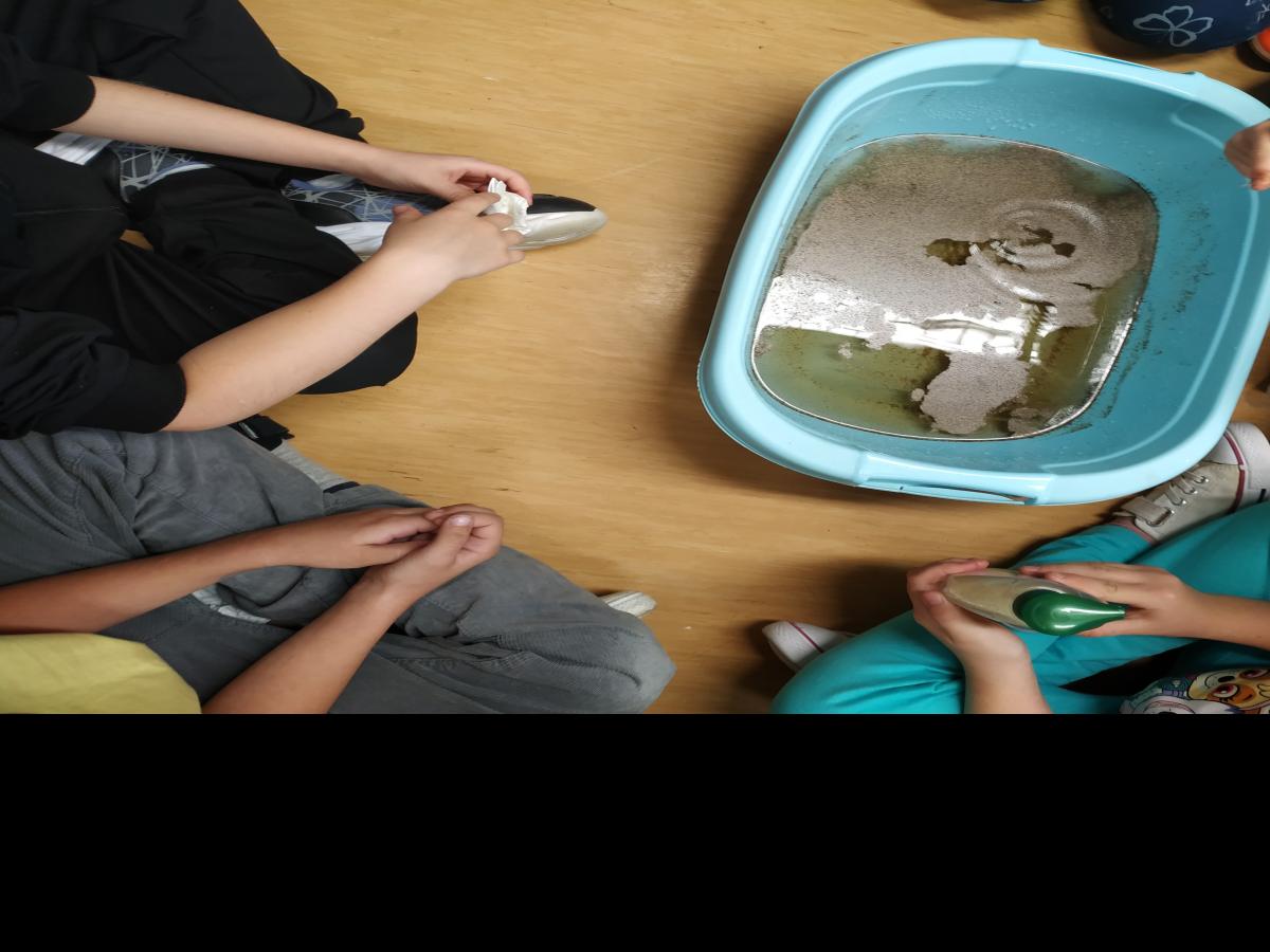 Uczniowie klasy pierwszej wykonali trzecie zadanie z projektu „Bezpiecznie i zdrowo z małpką Iwoną”. Tym razem było to doświadczenie ukazujące jak ważne jest codzienne mycie rąk. Pod wpływem mydła pieprz rozchodził się na boki, co symbolizowało, że woda i mydło niszczą bakterie. Gdy dzieci zanurzały palec w wodzie to pieprz przyklejał się do ich palca, natomiast palec posmarowany mydłem powodował oddalanie się pieprzu. Uczniowie zapamiętają to jako cenną lekcje, że codzienne mycie rąk jest kluczowe dla zdrowia, chroniąc przed przenoszeniem bakterii  i wirusów, które mogą powodować różne choroby.