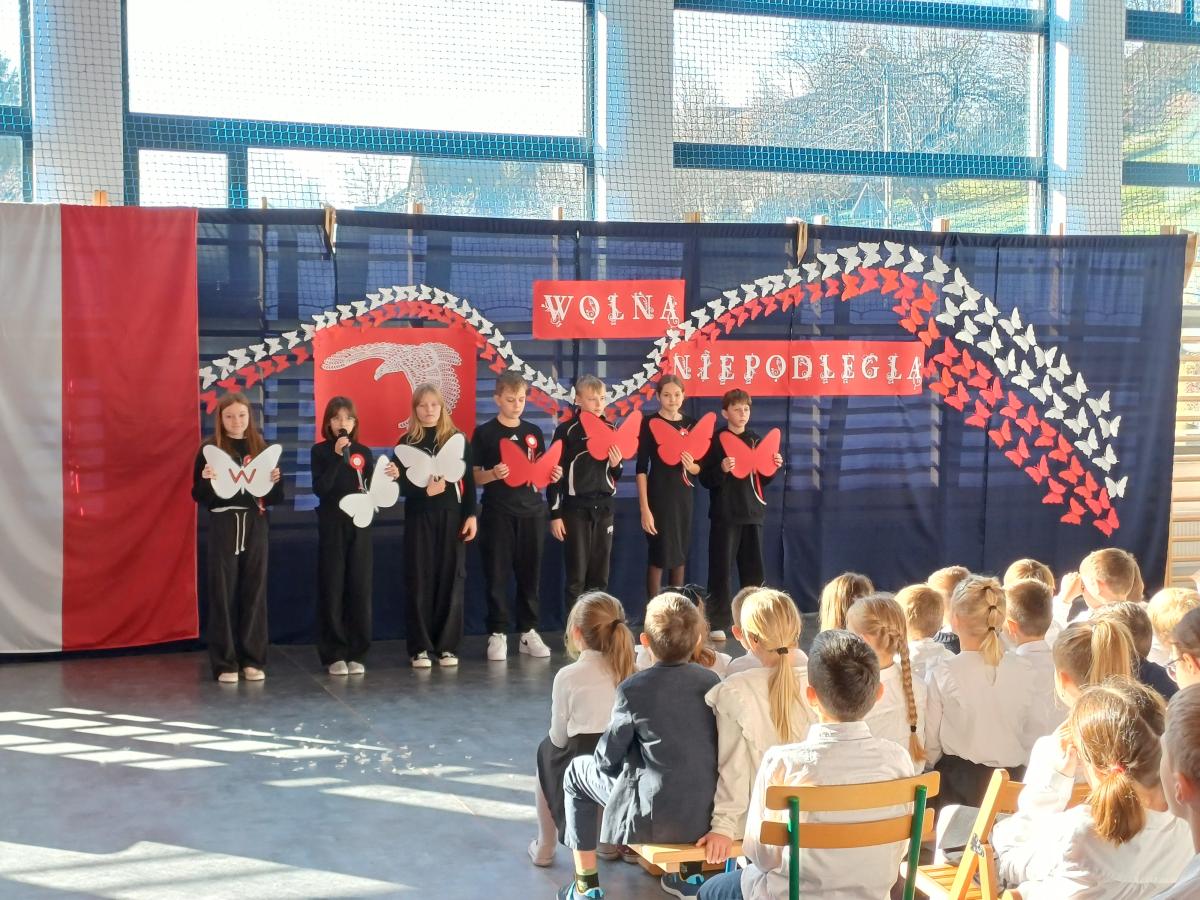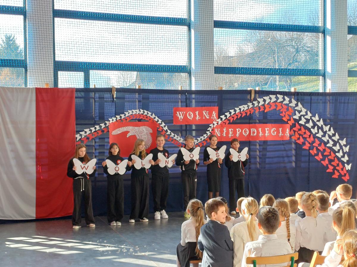 W pierwszej części apelu uczniowie klas V i VII zaprezentowali przedstawienie pt. „Jej Wysokość – Wolność”, w którym przypomnieli najważniejsze wartości związane z odzyskaniem przez Polskę niepodległości. Ich występ podkreślił, jak cennym darem jest wolność i jak ważne jest pielęgnowanie pamięci o tych, którzy o nią walczyli.