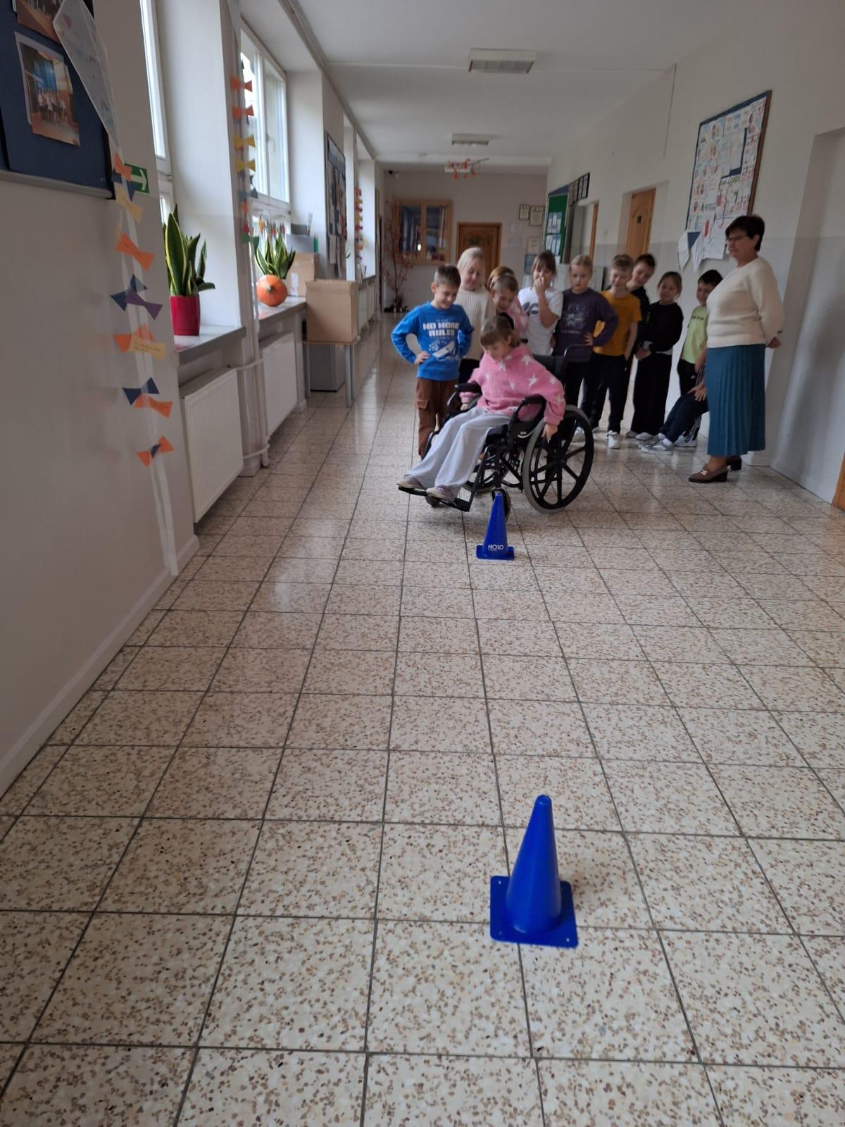 W ramach projektu uczniowie klas 1-3 uczestniczyli w dwóch spotkaniach warsztatowych, które odbyły się 17 listopada oraz 1 grudnia, a każde z nich poświęcone było innemu rodzajowi niepełnosprawności. Pierwszego dnia uczniowie poznawali pojęcia niepełnosprawności oraz niepełnosprawności ruchowej. Mieli także wyjątkową możliwość spróbowania jazdy na wózku inwalidzkim, co pozwoliło im doświadczyć trudności, z jakimi mierzą się osoby poruszające się w ten sposób. Wspólnie omówiliśmy odczucia uczniów po ćwiczeniu oraz poznaliśmy różne rodzaje wózków.