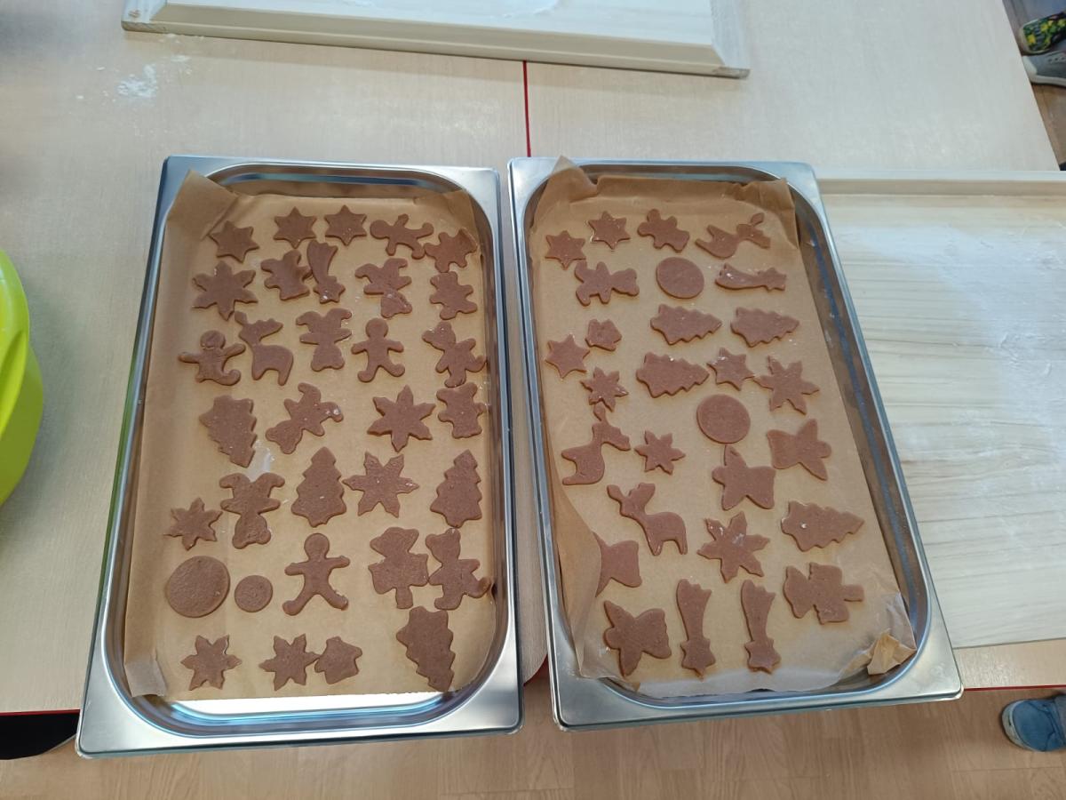 Po krótkim pokazie każde dziecko samodzielnie wykrawało swoje pierniczki, używając świątecznych foremek. Upieczone ciasteczka zostały ozdobione lukrem i kolorowymi posypkami.