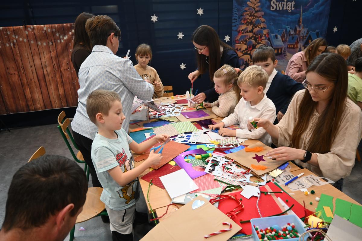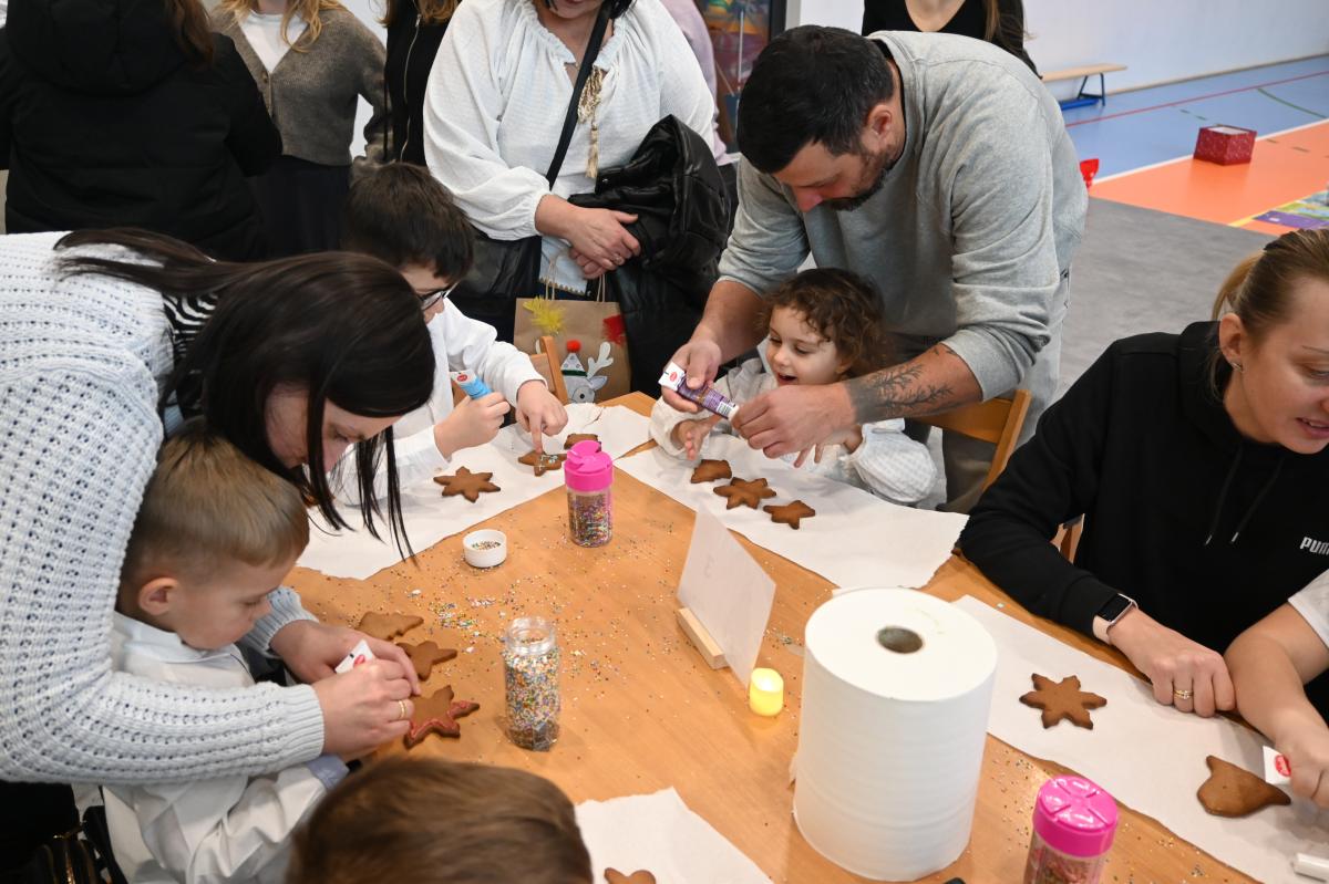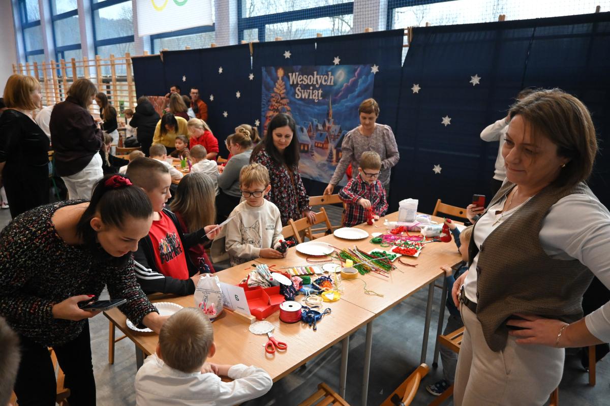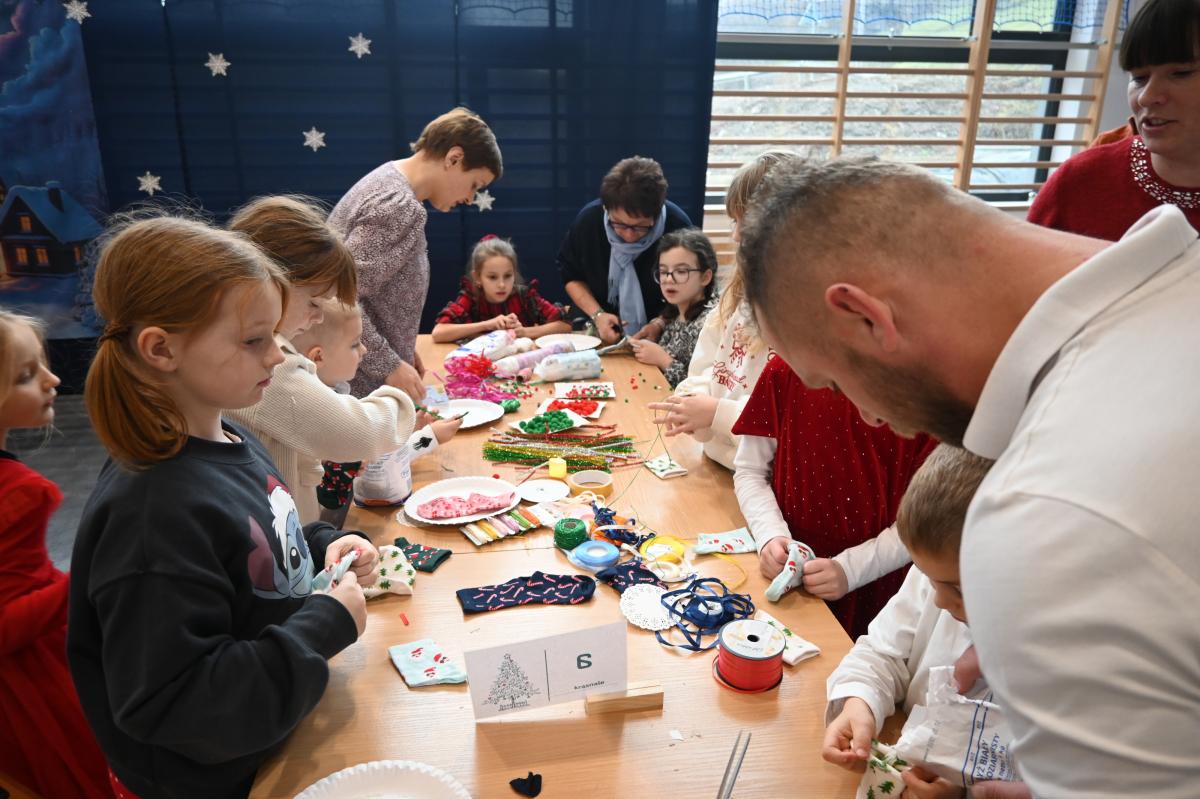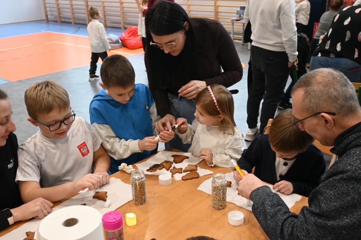 „Czas radości” pod takim hasłem w naszej szkole już po raz drugi odbyły się świąteczne warsztaty. Był to czas przeznaczony na umocnienie rodzinnych więzi. Przedszkolaki oraz uczniowie klas 1-3 razem ze swoimi bliskim przemieszczali się między siedmioma stanowiskami, na których czekały do wykonania kolejne świąteczne ozdoby. Było dużo uśmiechu, radości oraz skupienie, bo niektóre zadania wymagały nie lada cierpliwości. Uczestnicy warsztatów mogli spędzić również czas czytając książki, grając w gry, spróbować sił w programowaniu photonów oraz zrobić sobie pamiątkowe zdjęcie. Najlepszym podsumowaniem świątecznego spotkania, są słowa uczniów z klasy 2, którzy stwierdzili, że bez szkolnych warsztatów nie ma świąt!