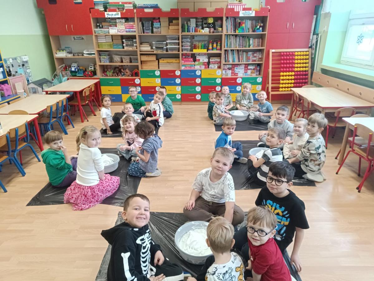 23 stycznia 2026 r. w naszym przedszkolu odbyły się warsztaty sensoplastyczne z użyciem piankoliny. Podczas zajęć przedszkolaki, pracując w grupach, swobodnie eksperymentowały z materiałem, tworząc różnorodne kształty, figurki oraz proste rzeźby. Zabawa piankoliną była doskonałą okazją do rozwijania kreatywności, zmysłu dotyku oraz umiejętności współpracy. Warsztaty dostarczyły dzieciom wielu pozytywnych emocji i twórczej radości.