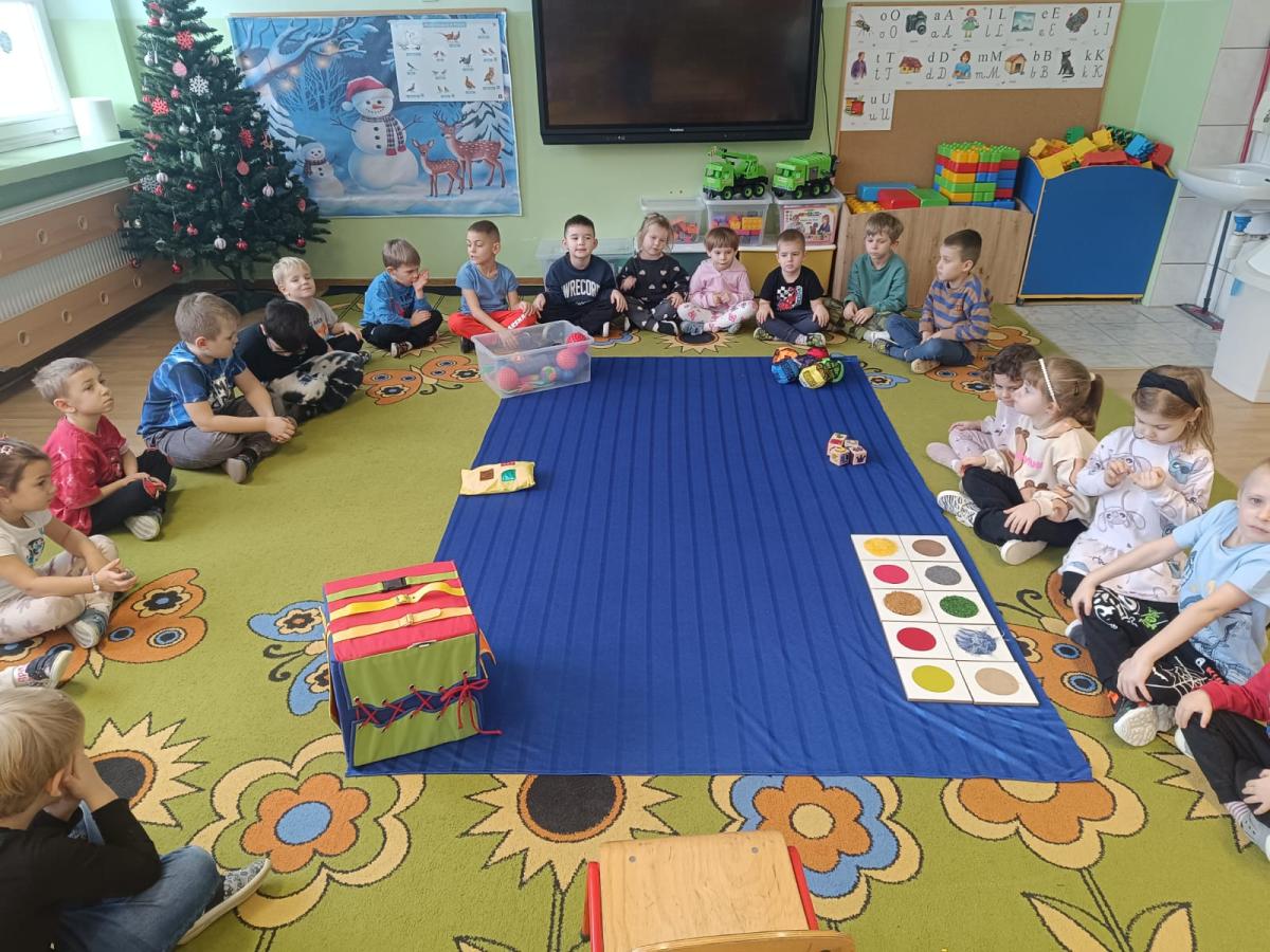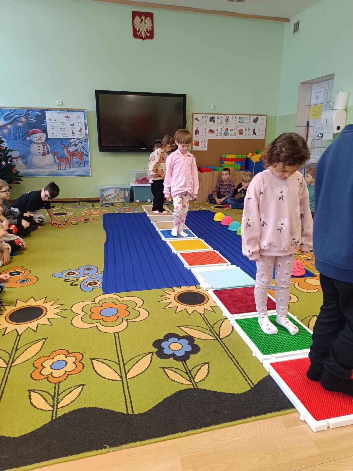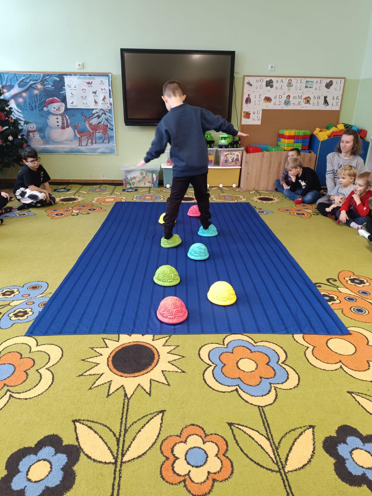 W przedszkolu zrealizowano zajęcia sensoryczne w ramach działań wspierających rozwój integracji sensorycznej dzieci. Podczas zajęć uczestniczyli w przejściu ścieżki sensorycznej, składającej się z kamieni sensorycznych o zróżnicowanej fakturze oraz paneli sensorycznych. W dalszej części zajęć miały możliwość poznawania i różnicowania bodźców dotykowych poprzez manipulowanie pomocami sensorycznymi, takimi jak piłki, kule, wałki oraz inne materiały o zróżnicowanej strukturze. Zajęcia przyczyniły się do stymulowania zmysłu dotyku oraz rozwijania koordynacji sensoryczno-motorycznej.