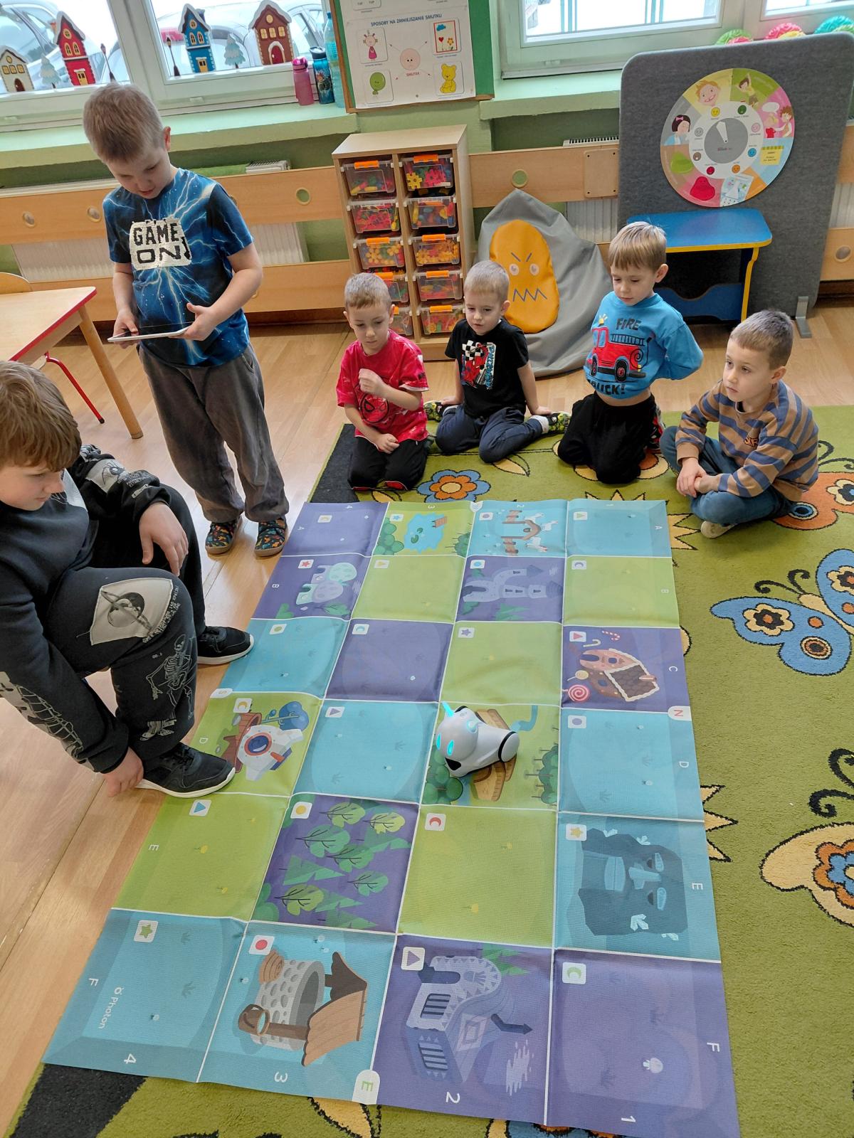 Dnia 27.01.2026r. w przedszkolu odbyły się zajęcia z wykorzystaniem robota Photon oraz maty edukacyjnej. Dzieci z dużym zainteresowaniem uczestniczyły w aktywnościach, poznając podstawy programowania i logicznego myślenia poprzez zabawę. Zajęcia dostarczyły przedszkolakom wiele radości i pozytywnych emocji.