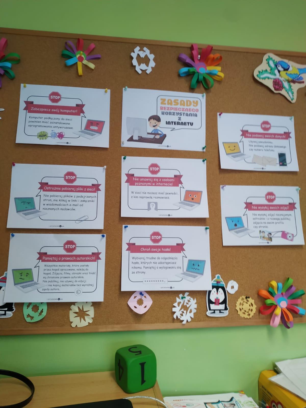 Uczniowie w ramach projektu Bezpiecznie i zdrowo z małpką Iwoną obchodzili Światowy Dzień Bezpiecznego Internetu. Słuchali wiersza o zwierzętach, które napotkały na zagrożenia w Internecie. Następnie oglądali obrazki dotyczące niebezpieczeństw w Sieci i pokazywali kółka czerwone, żółte lub zielone w zależności od tego czy można tak się zachować, nie można lub trzeba zapytać rodziców. Uczniowie mieli bardzo dużo refleksji na ten temat i na pewno wiele informacji zapamiętali.