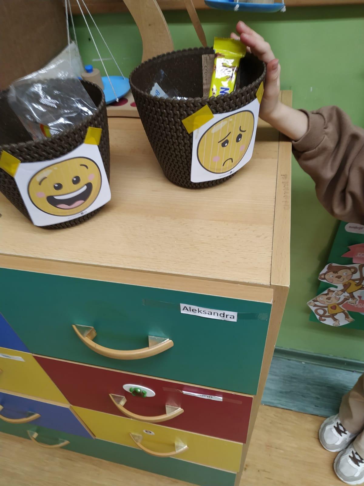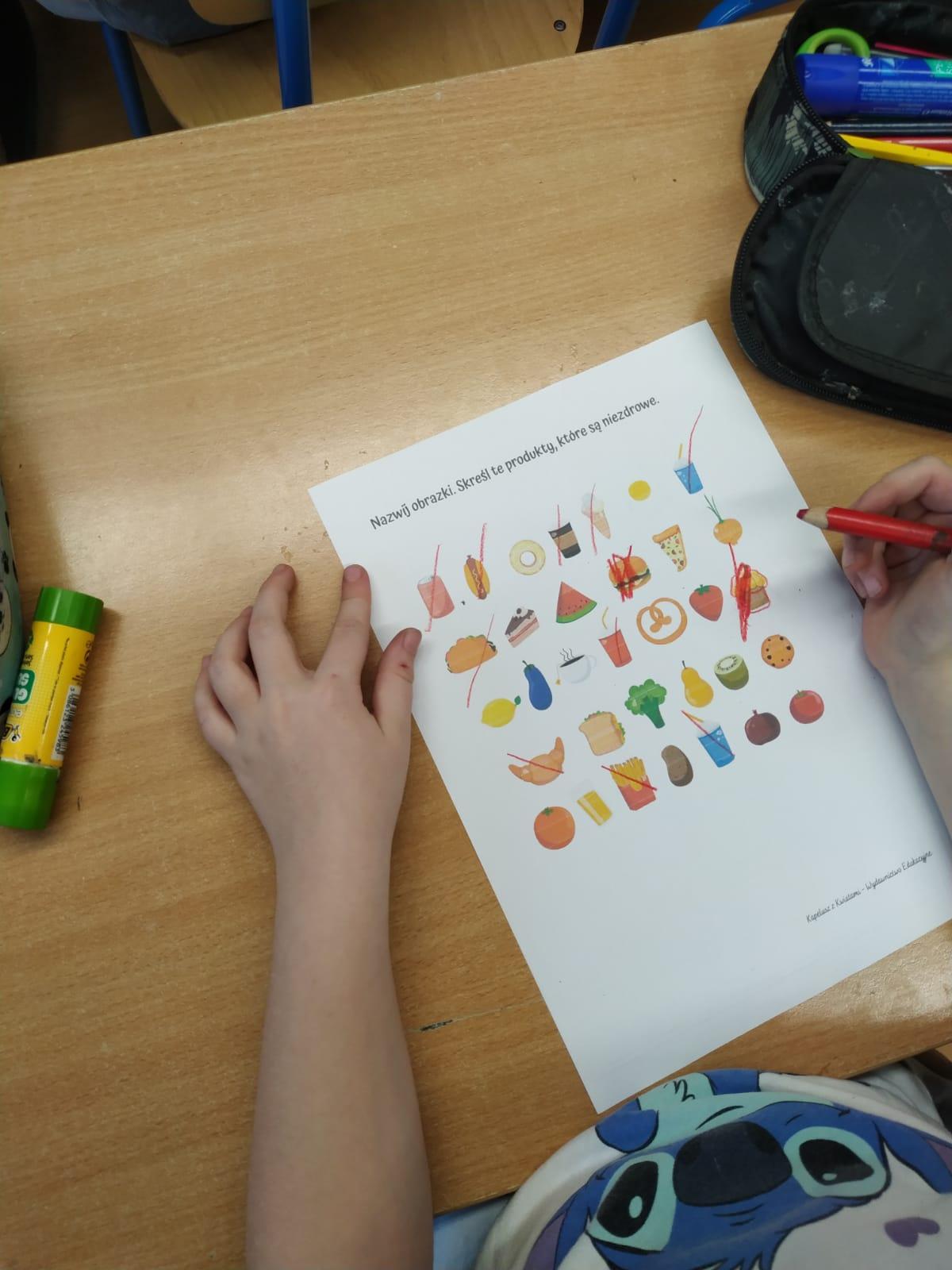 Uczniowie klasy pierwszej wykonali kolejne zadanie z projektu „Bezpiecznie i zdrowo z małpką Iwoną”, które dotyczyło Dnia bez Oleju Palmowego. Najpierw usłyszeli zabawną historię o zwierzętach, które przesadziły ze słodyczami. Następnie każde dziecko czytało etykietę z opakowania po ulubionej przekąsce i wkładało je do odpowiedniego koszyka z uśmiechniętą lub smutną miną. Uczniowie dowiedzieli się jak ważne jest czytanie etykiet i co oznaczają napisane tam składniki. Na koniec każdy opowiedział swoje wrażenia dotyczące zajęć oraz zrobił kartę pracy dotyczącą zdrowego żywienia.