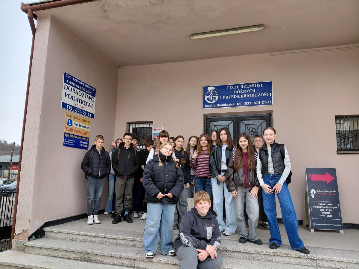 Dnia 25.03.2026r. uczniowie klas 6–8 wzięli udział w wycieczce zawodoznawczej do Cechu Rzemiosł Różnych i Przedsiębiorczości w Suchej Beskidzkiej, salonu „Szczęśliwa TY” w Suchej Beskidzkiej oraz do szpitala na oddział opieki paliatywnej w Makowie Podhalańskim.