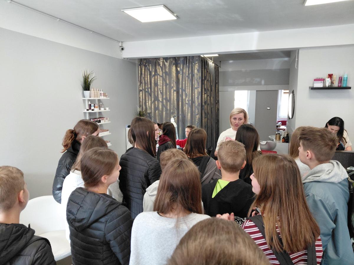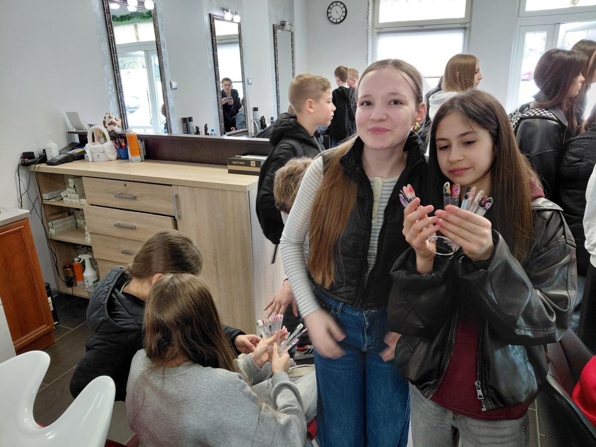 Podczas wizyty w Cechu Rzemiosł uczniowie poznali różne zawody oraz możliwości kształcenia w kierunkach rzemieślniczych. W salonie „Szczęśliwa TY” mogli zobaczyć, jak wygląda codzienna praca w branży beauty oraz jakie kompetencje są niezbędne do wykonywania tego zawodu.